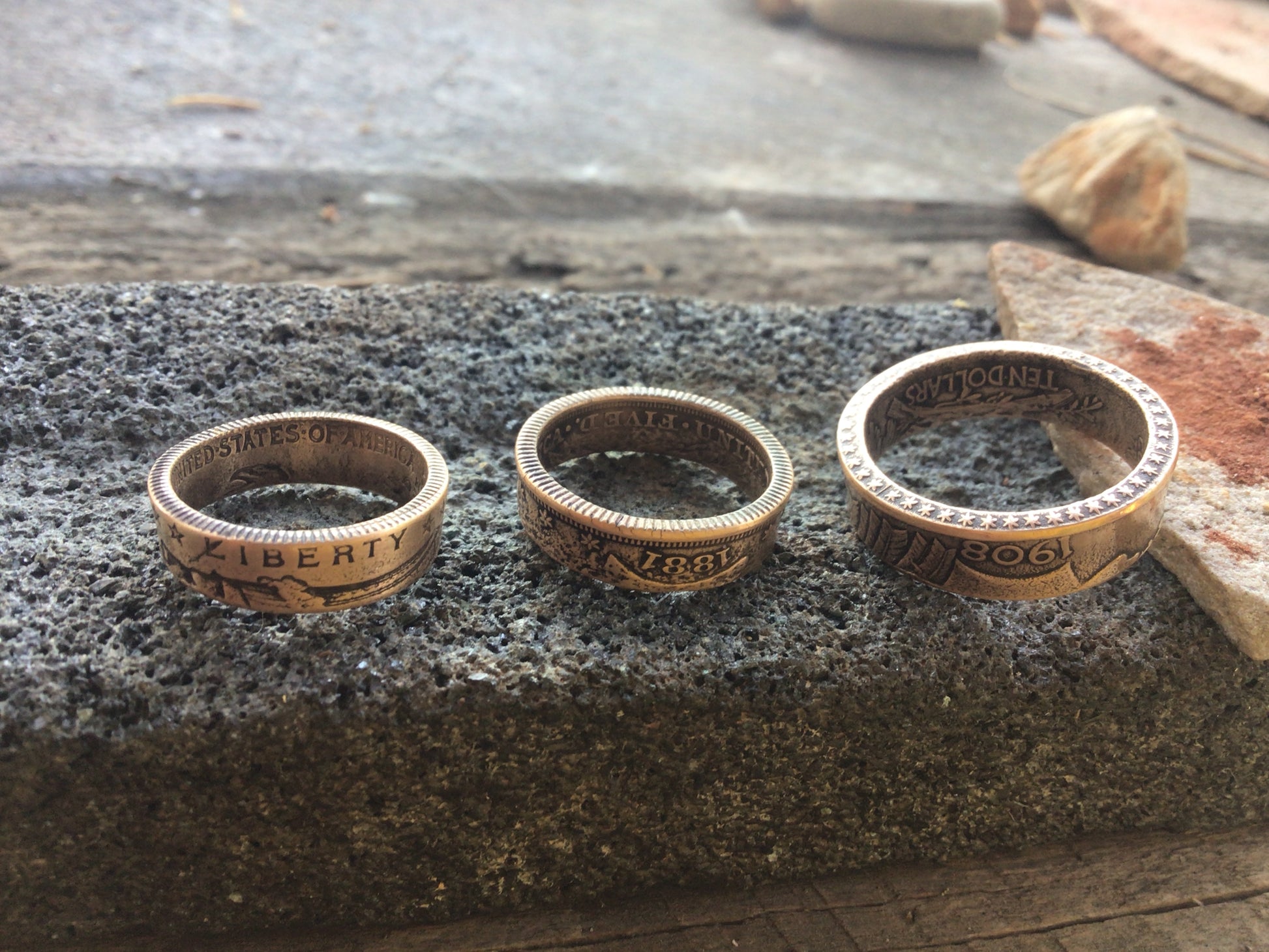 in the first image, its the one in the left, and these other gold coin rings are also available for purchase.
