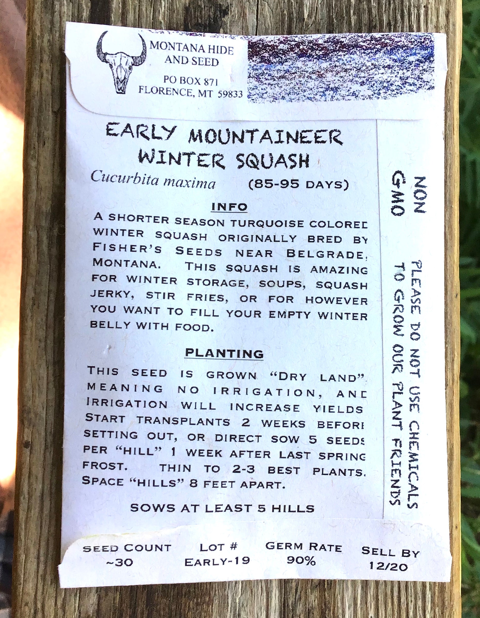 INFO: A shorter season turquoise colored winter squash originally bred by Fisher’s Seeds near Belgrade, Montana. This squash is amazing for winter storage, soups, squash jerky, or however you want to fill your empty belly.