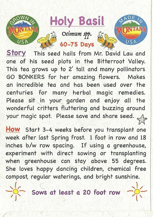 This seed hails from Mr. David Lau and one of his seed plots in the Bitterroot Valley. This tea grows up to 2’ tall and many pollinators GO BONKERS for her amazing flowers. Makes an incredible tea and has been used over the centuries for many herbal magic remedies. Please sit in your garden and enjoy all the wonderful critters fluttering and buzzing around your magic spot. Please save and share seed.
