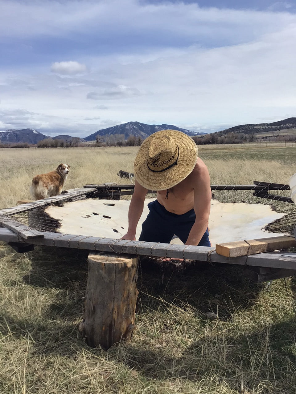 The Process: With gratitude to the bison, you will learn: framing, “braining", softening, and smoking your hide (if you choose this step). The entire process requires approximately 40-80 hours of work, with staff supporting you throughout your journey. A natural hot springs is about eight miles away for relaxation, rejuvenation, and to watch the eagles dance above you.