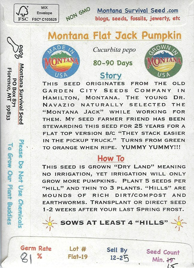 INFO: This seed originates from the old Garden City Seeds Company in Hamilton, Montana. The young Dr. Navazio naturally selected the “Montana Jack” while working for them. My seed farmer friend has been stewarding this seed for 25 years for a flat top version because “They stack easier in the pickup truck.” Turns from green to orange when ripe. YUMMY YUMMY!!!